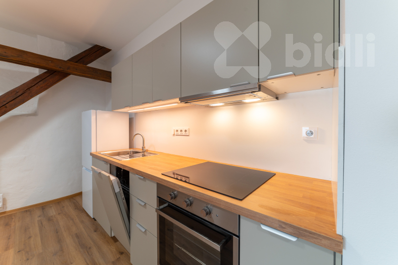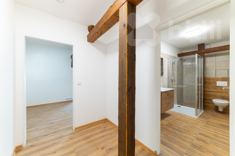 Nabízím k pronájmu krásný nový byt 1+1 v centru Vizovic, který je řešen jako otevřený podkrovní prostor.