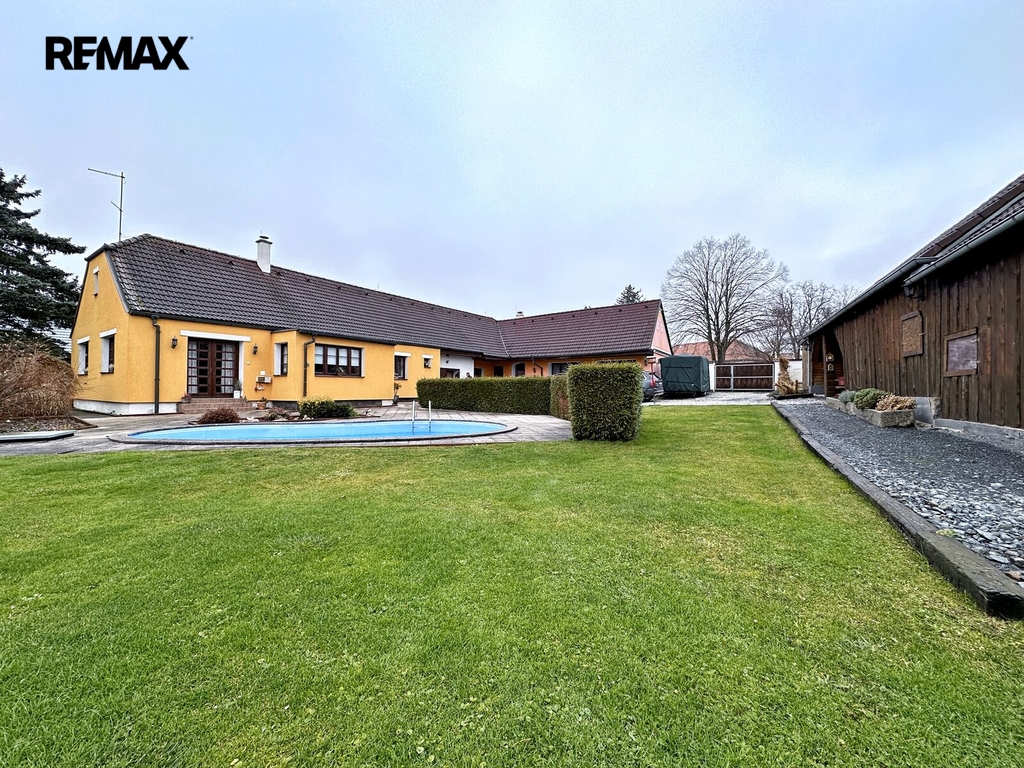 Nemovitost se nachází na rozsáhlém pozemku, který je rozdělen na několik částí. K relaxaci slouží velká zahrada s bazénem, saunou a pergolou se zděným krbem, ideálním místem pro rodinné oslavy či posezení s přáteli.
