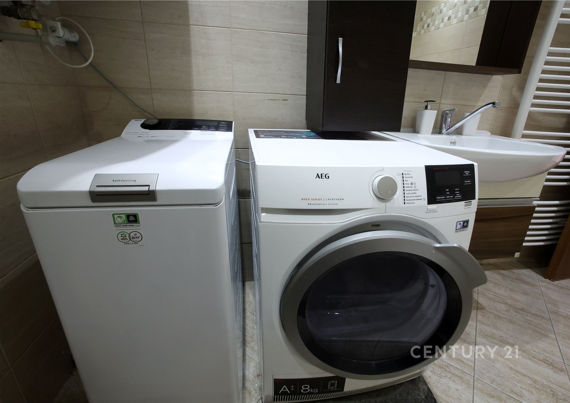 Koupelna nabízí jak sprchový kout, tak i vanu, je zde také pračka se sušičkou, takže každodenní provoz je maximálně komfortní. Ložnice je vybavena nábytkem na míru od truhláře, který v bytě zůstává včetně postele, skříní i polic, a vytváří tak harmonický a praktický celek. V jednom z pokojíků zůstává postel, což ocení zejména rodina s dětmi.