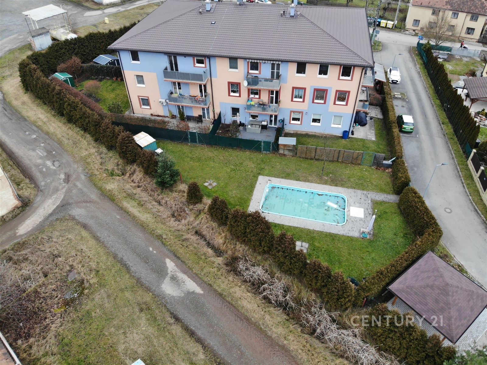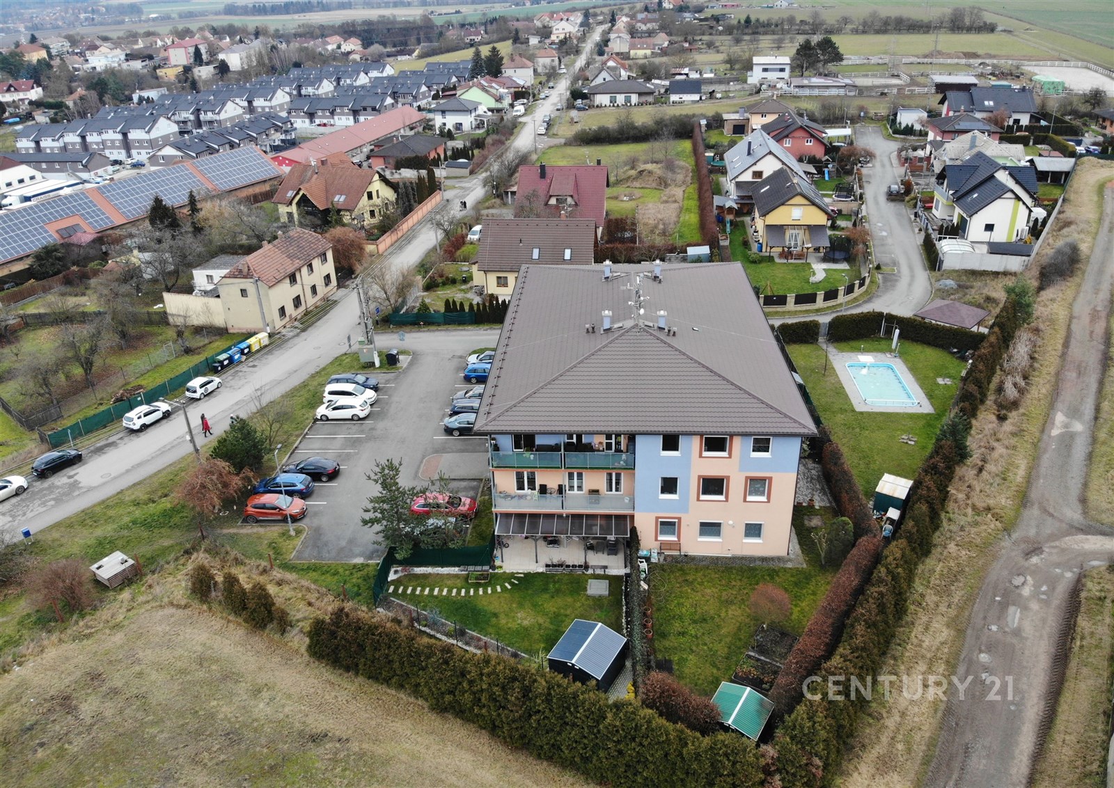 K bytu náleží sklep o velikosti 2 m², který je prakticky umístěný přímo na patře. U vstupu do domu je k dispozici kočárkárna a kolárna. Velkým benefitem je společná zahrada s bazénem a pergolou, kde můžete trávit letní dny s rodinou a přáteli. Aktuálně se navíc buduje dětské hřiště s herními prvky, které nabídne prostor pro nejmenší. Samozřejmostí jsou také dvě parkovací místa náležející k bytu.