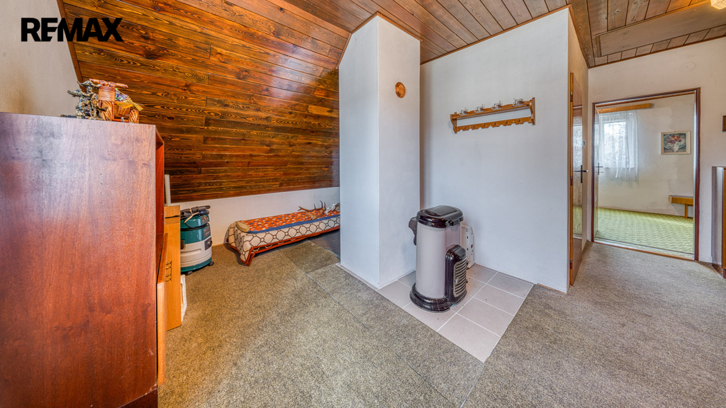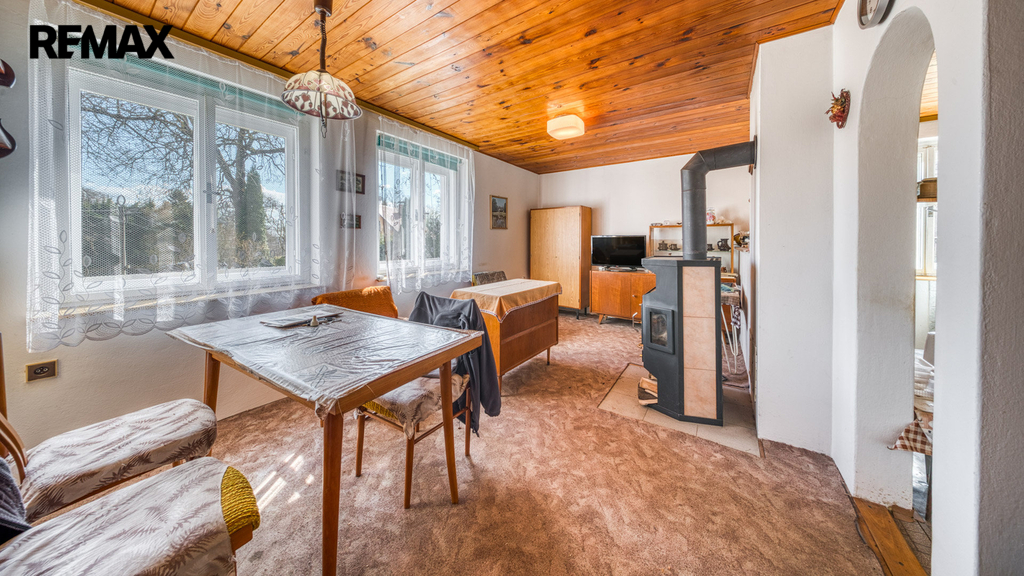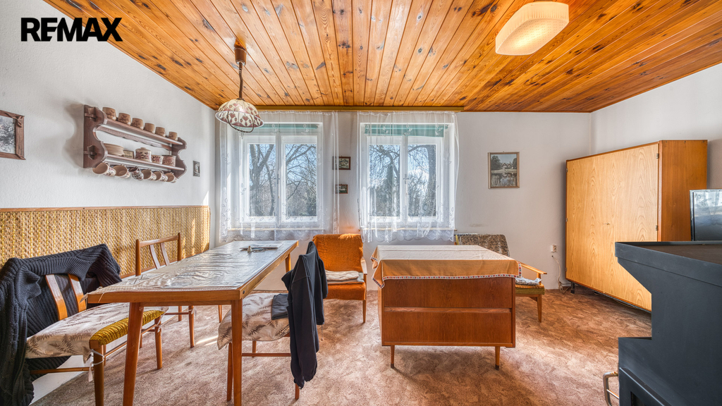 Interiér je převážně v původním, udržovaném stavu. Pro někoho představuje příležitost k modernizaci dle vlastního vkusu, pro jiného si zachovává autentický charakter klasické rekreační chaty, který nebude chtít měnit.