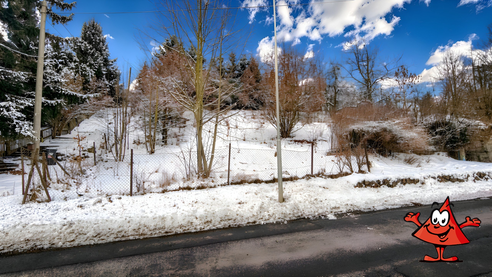 Parcela je svažitá (cca 21 %), což umožňuje zajímavé architektonické řešení domu s terasami a výhledem – typ, který je mezi architekty velmi vyhledávaný.
