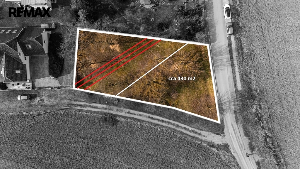 Nad částí pozemku vede nadzemní vedení vysokého napětí s ochranným pásmem cca 7 m na každou stranu, kde není možné umisťovat stavby, ale lze využívat jako zahradu. I přes toto omezení zůstává dostatečný prostor pro umístění rodinného domu.
