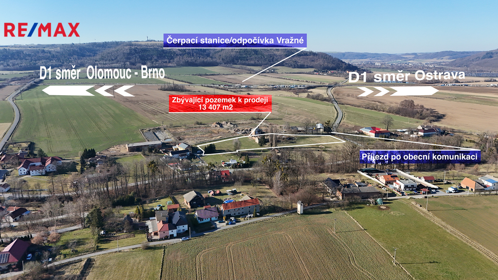 Prodej pozemku o výměře cca 6 703 m2 v obci Vražné - Hynčice