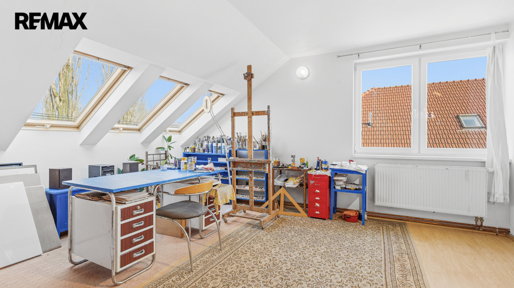 Dispozice domu nabízí čtyři pokoje a také ateliér či pracovnu, který může sloužit nejen pro uměleckou tvorbu, ale také jako pracovna, studio nebo prostor pro podnikání z domova.