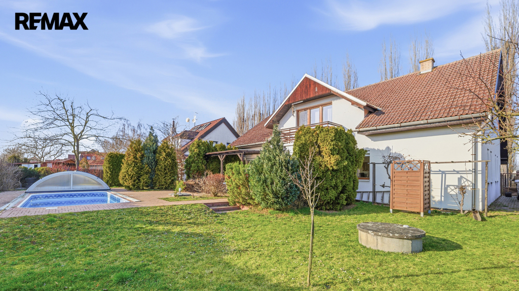 Velkou předností domu je zahrada poskytující dostatek soukromí i prostoru pro relaxaci. Dominantou je bazén s posuvným zastřešením, vyhřívaný tepelným čerpadlem, který umožňuje koupání po větší část roku. Na pozemku se nachází také studna pro zalévání zahrady, upravené okrasné porosty a venkovní udírna s grilem, ideální pro letní posezení s rodinou a přáteli.