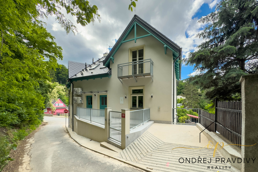 Byt se nachází ve 2. nadzemním podlaží a po kompletní přestavbě domu se může pyšnit nadstandardní kvalitou provedení a použitých materiálů. Provedení zahrnuje dřevěné plovoucí podlahy, dřevěná euro okna s trojskly, designové dlažby a nadčasové obklady. Značková sanita firem Laufen a Hansgrohe. Dále jsou datové rozvody, klimatizace, příprava na zabezpečení a elektromobilitu. Díky zateplení celého domu i vlastnímu kondenzačnímu kotli pro vytápění a ohřev vody budou provozní náklady skutečně příznivé. Orientace na jiho-západ zajišťuje dostatek slunečního světla a vysoké stropy zase pocit vzdušnosti. Příslušenství bytu zahrnuje terasu přístupnou z obývacího pokoje, vlastní parkovací stání a prostorný sklep 11 m² na jakékoliv sportovní či sezónní vybavení.