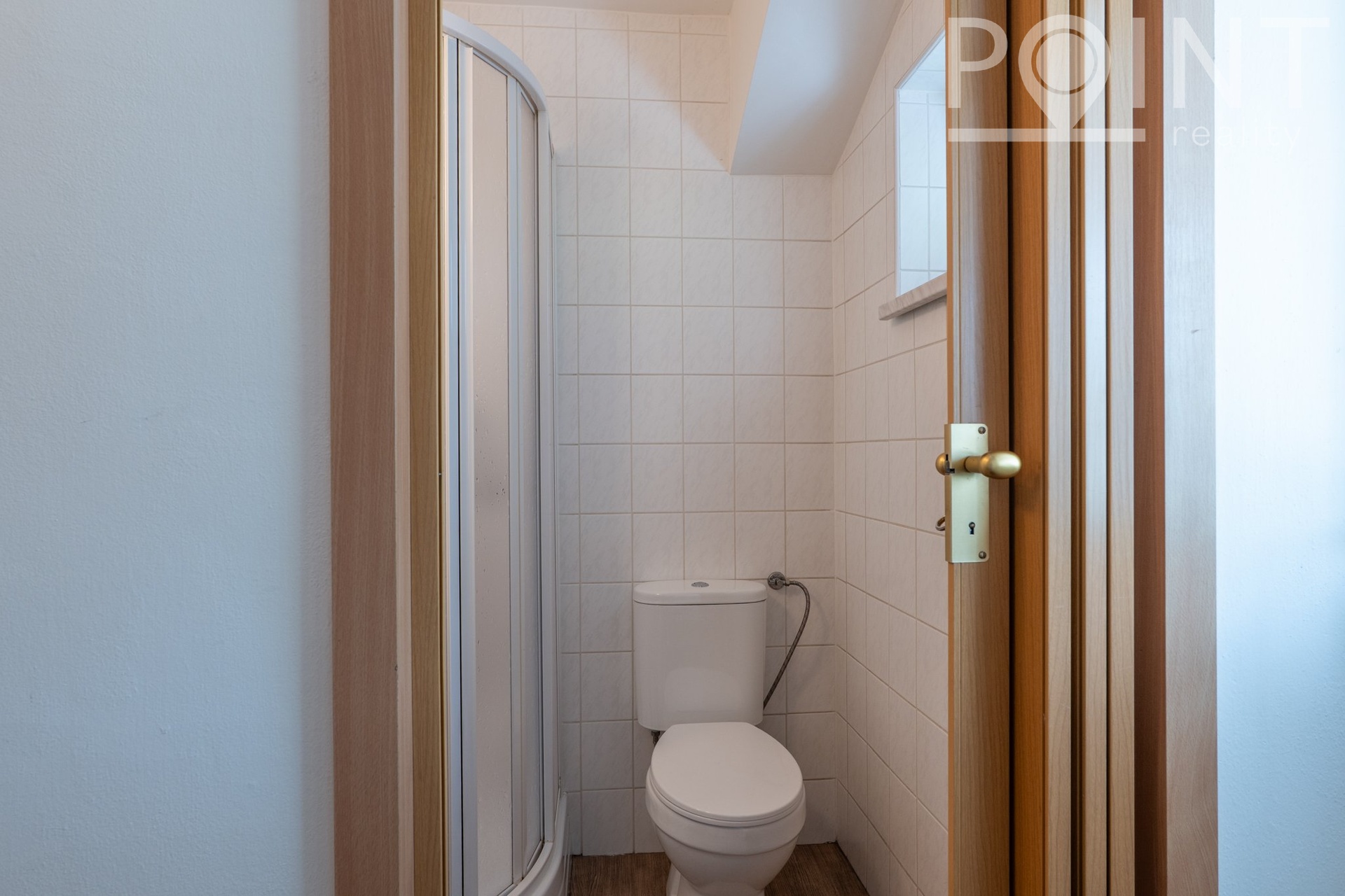 pokoj, koupelna s toaletou a sprchovým koutem.