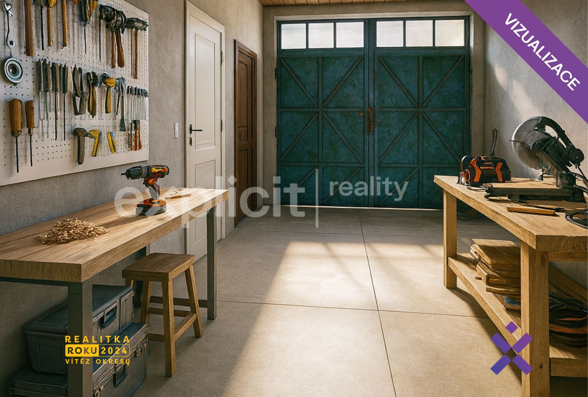 Dům je přízemní o dispozici 4+1 s rozsáhlou půdou nad celým objektem o výměře 221 m², která nabízí možnost vybudování dalšího obytného patra. Součástí nemovitosti jsou celkem 3 garáže, jedna je součástí domu a dvě jsou samostatně stojící na pozemku. Dále jsou součásti domu různé skladovací a technické místnosti.