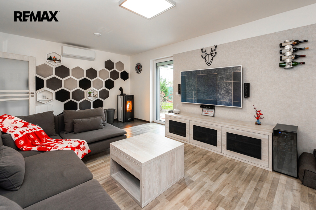 Energetické řešení domu je jedním z jeho největších benefitů. Veškeré vyrobené teplo je akumulováno do bojleru o objemu 123 litrů. O vytápění se stará kombinace radiátorů, klimatizace, peletových kamen s napojením na bojler a samozřejmě také rekuperace vzduchu. Klimatizace byla instalována v roce 2023. Celý systém doplňuje moderní fotovoltaika z roku 2024 — 16 solárních panelů o celkovém výkonu 8kWh , baterie 11,6 kWh a wallbox 11kWh, vše od značky Solax. Díky tomu činily celkové roční provozní náklady za minulý rok pouhých 22 000 Kč, a to včetně dobíjení auta. Náklady na vodu jsou přibližně 500 Kč na dospělou osobu.