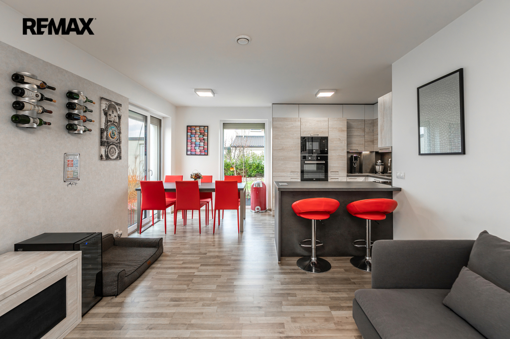 Z interiéru zůstává plně vybavená kuchyňská linka a vestavěné skříně. Velkou přidanou hodnotou jsou také velmi dobré sousedské vztahy v celé ulici — funguje zde aktivní sousedská skupina.