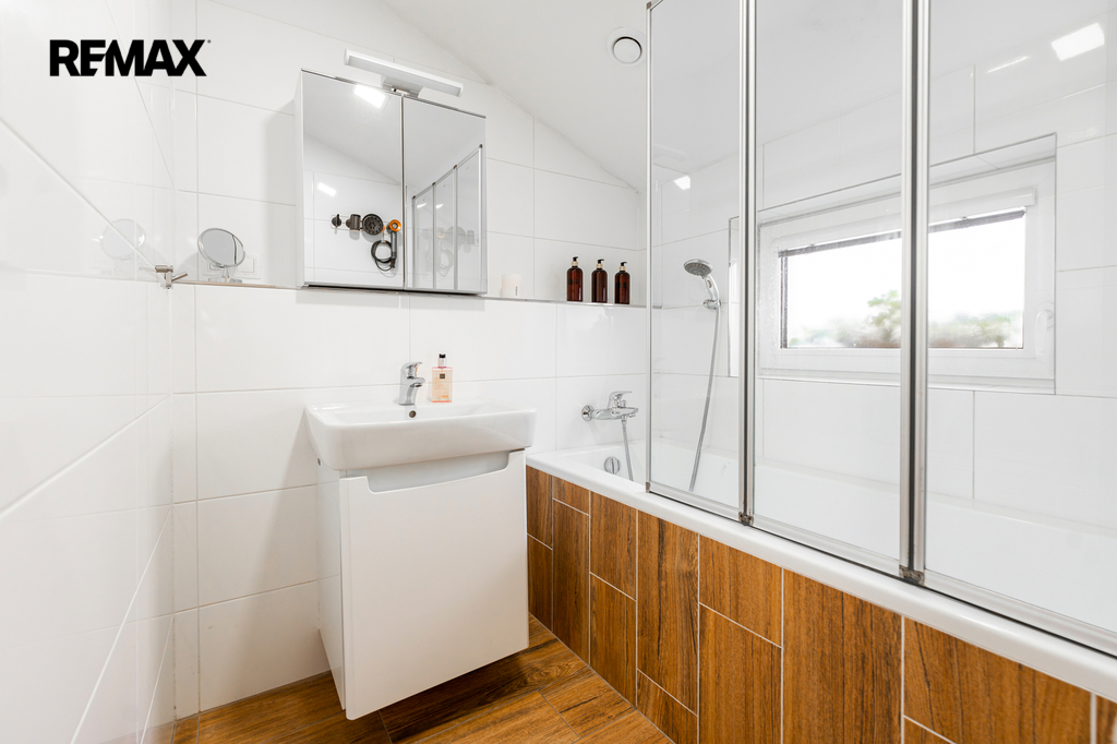 Dům o dispozici 5+kk a výměře 123 m² stojí na pozemku 530 m² a nabízí velmi promyšlenou konstrukci: sedlovou plechovou střechu, cihlové zdivo Heluz 25 a kvalitní zateplení 20 cm polystyrenu. Plastová okna s trojskly jsou doplněna ochrannými sítěmi, v horním patře vnitřními žaluziemi, v celém přízemí a ve dvou ložnicích v horním patře navíc elektricky ovládanými roletami. V interiéru se střídají dlažby a laminátové podlahy.
