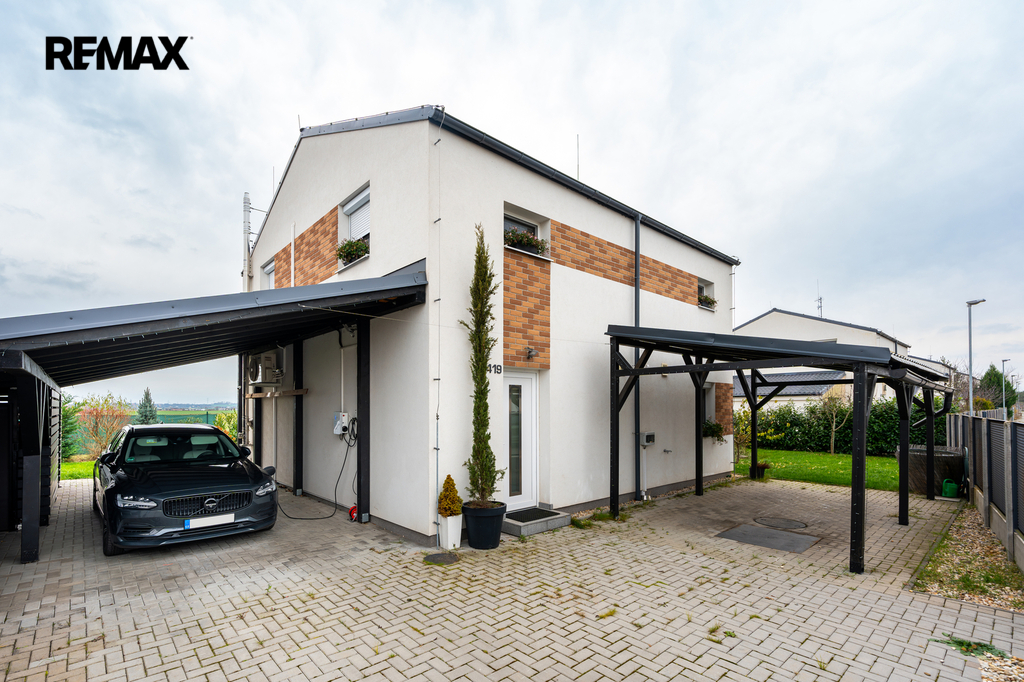 Moderní pasivní dům 5+kk s FVE 8kWh, baterií 11,6 kWh, wallboxem a parkováním až pro 5 aut.