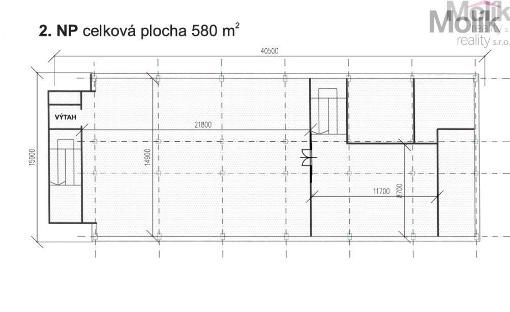 Celková užitná plocha činí 1150 m and sup2; prostor na pronájem lze rozdělit na menší sekce nebo pronajmout po jednotlivých patrech.