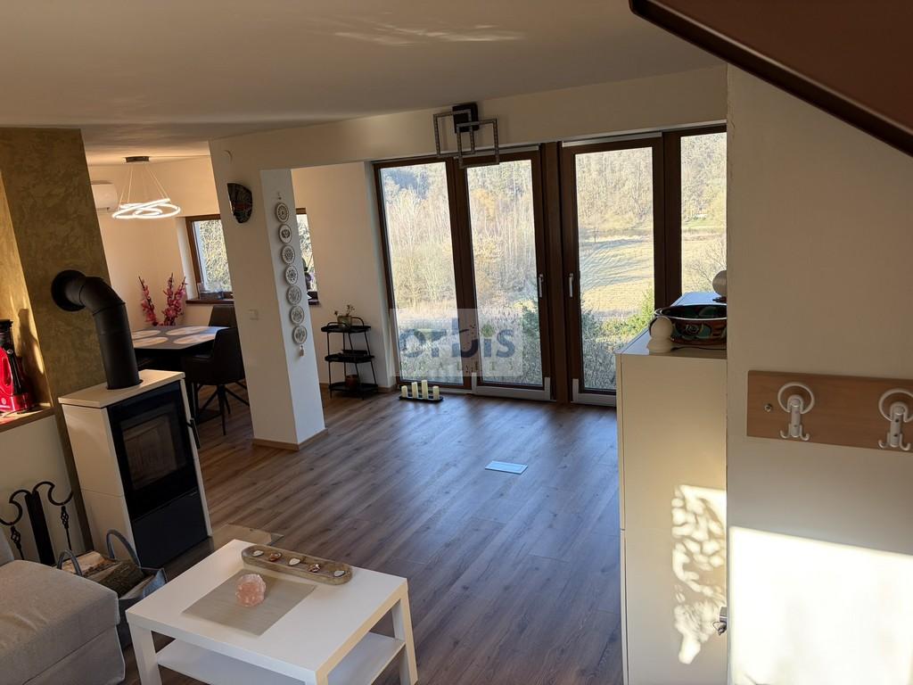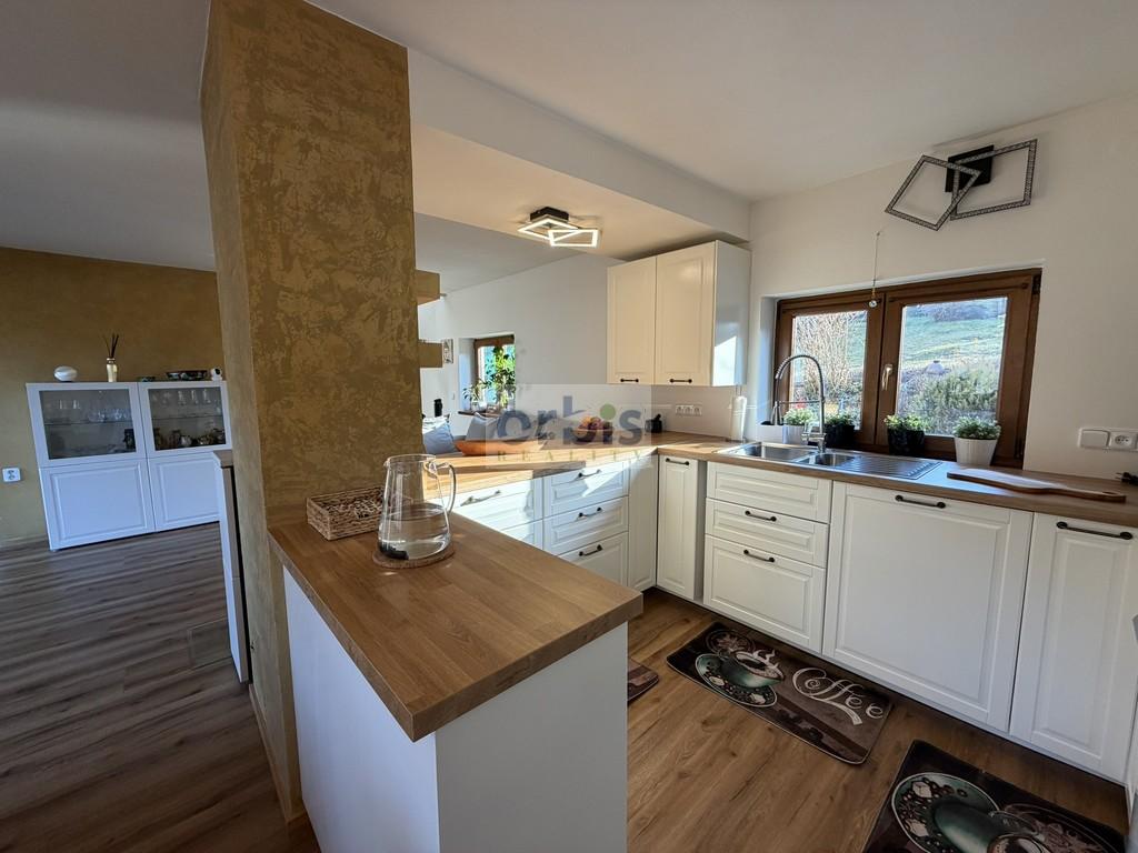 Přízemí: obývací pokoj se sedací soupravou, nová kuchyňská linka včetně spotřebičů (varná deska, elektrická trouba, myčka, lednice, mikrovlnná trouba), nová koupelna s vanou a WC.