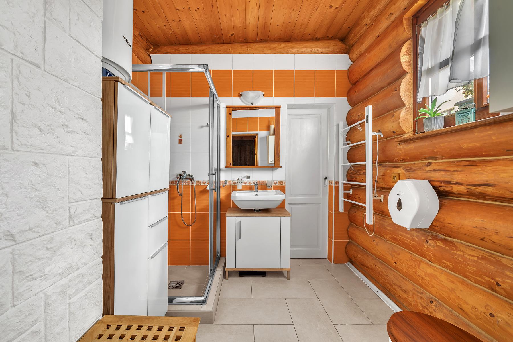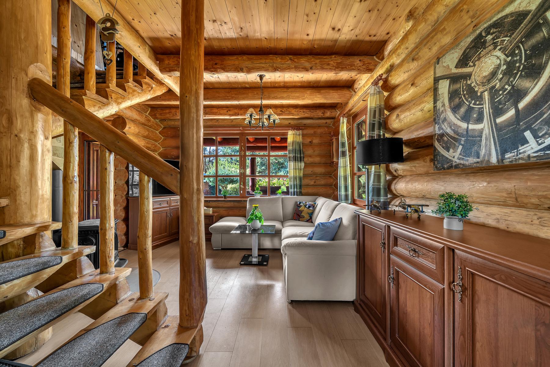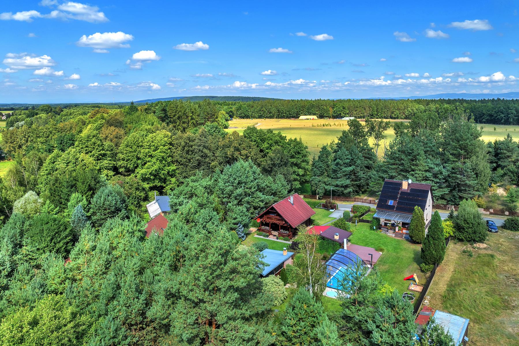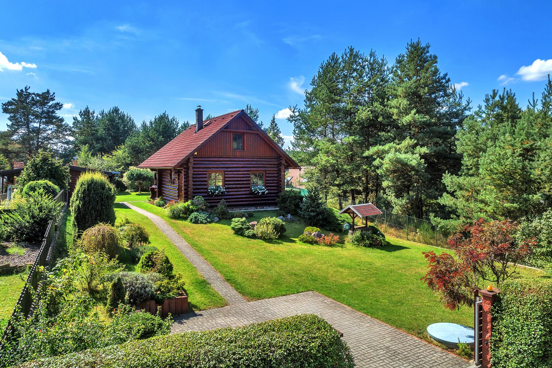 Luxusní srub s vybavením na míru, okrasnou zahradou a šamotovým grilem