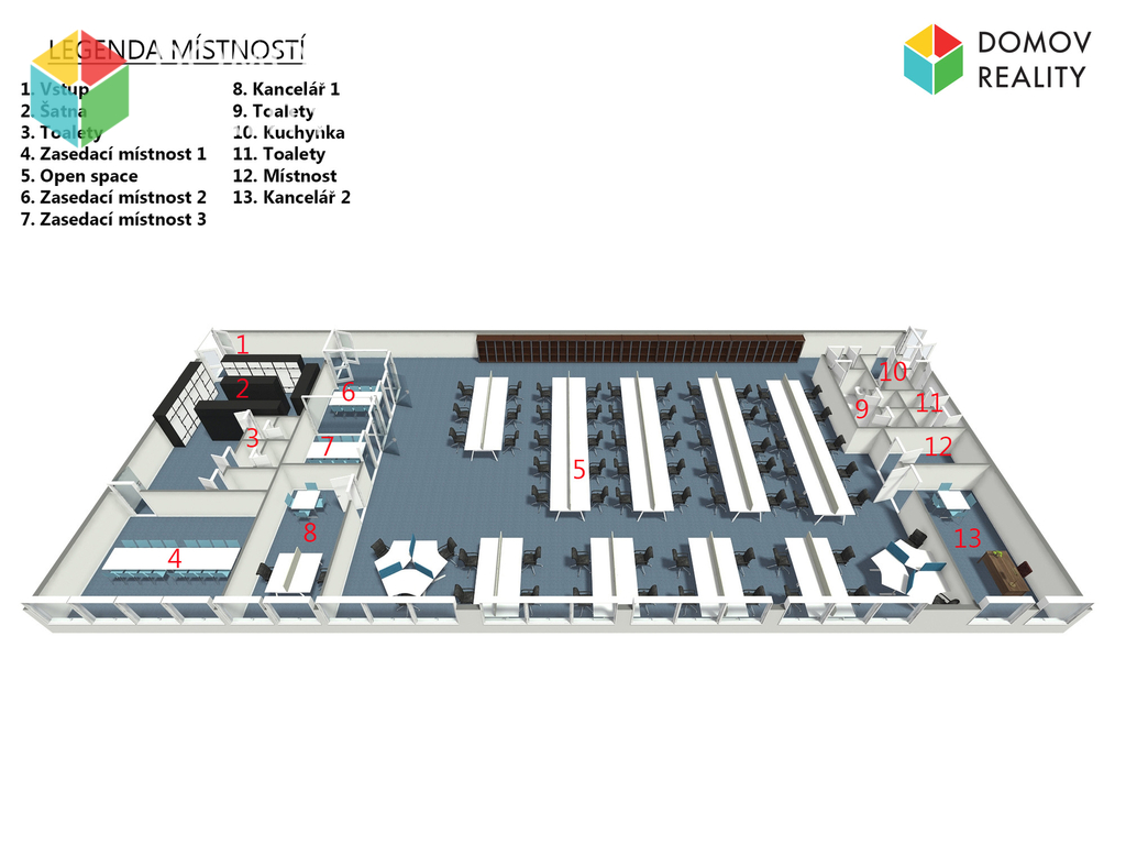 Dispozice je flexibilní a lze ji přizpůsobit potřebám podnájemce.