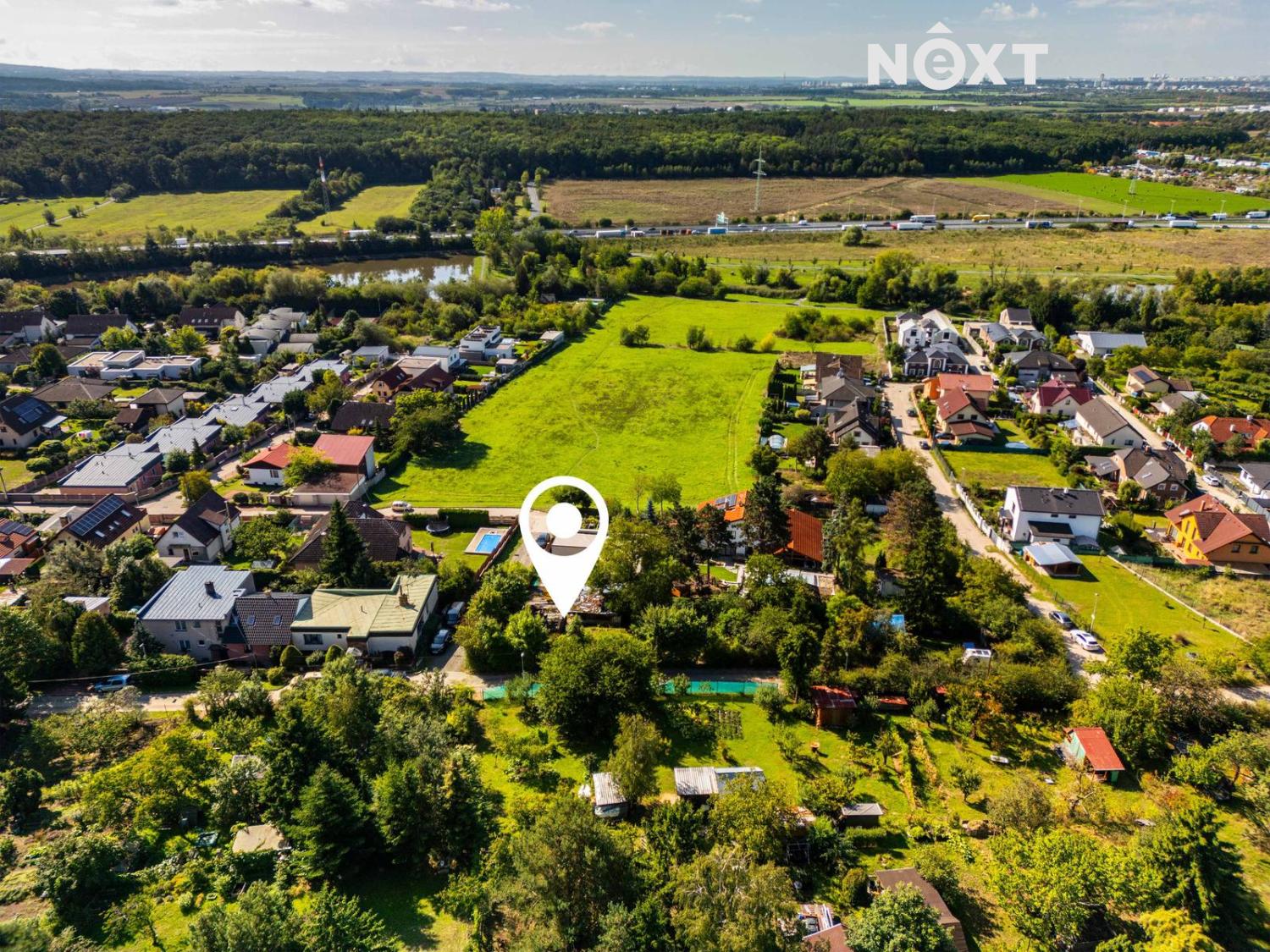 Veškeré inženýrské sítě (elektřina, plyn, kanalizace, voda i telekomunikace) jsou na hranici pozemku, příjezd je zajištěn z ulice Bratranců Veverkových. V okolí najdete kompletní občanskou vybavenost – školky, školy, obchody i sportoviště – a přitom tu máte přírodu doslova za rohem. Na Pražský okruh a dálnici D10 je to pár minut, autem jste v centru města zhruba za půl hodiny.