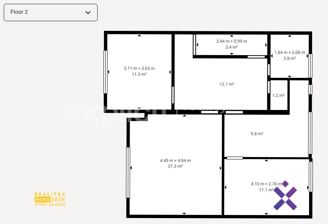 Dům disponuje dalšími dvěma podlažími s prázdnými pokoji připravenými k úpravám. Každé z pater má zhruba 60m² a stávající dispozici 3+1.