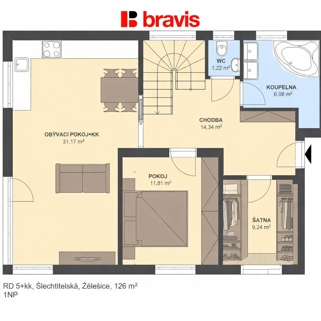 Prodej nízkoenergetického RD 4+kk (126m²), Želešice u Brna, prostorná šatna, garáž (29m²), zahrada,