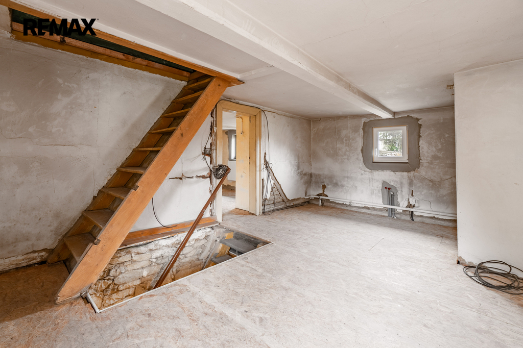 Nemovitost je určena k rekonstrukci, díky čemuž nabízí novým majitelům možnost upravit si celý dům přesně podle vlastních představ a potřeb. V přízemí byly v letech 2022 až 2023 realizovány částečně podhledy, podlahy zde tvoří parkety a lino. V přízemí se také nachází předkotelna a kotelna. Koupelna se sprchovým koutem a umístěným elektrickým bojlerem, samostatná toaleta, obývací pokoj s přípravou na kuchyňský kout. Ve druhém nadzemním podlaží se nachází dvě samostatné místnosti a z chodby terasa se vstupem do místnosti využívané jako sklad. Dalším benefitem je prostorná půda s potenciálem dalšího využití.