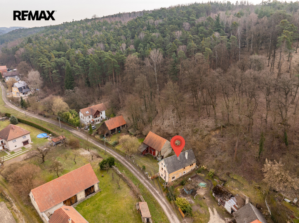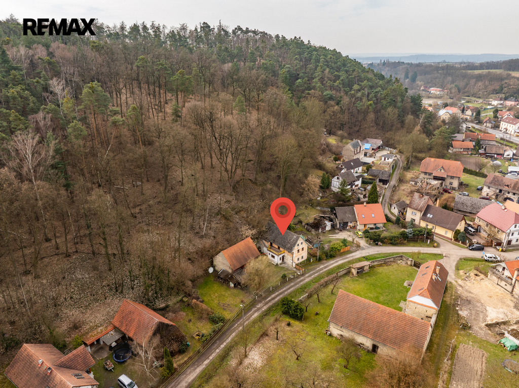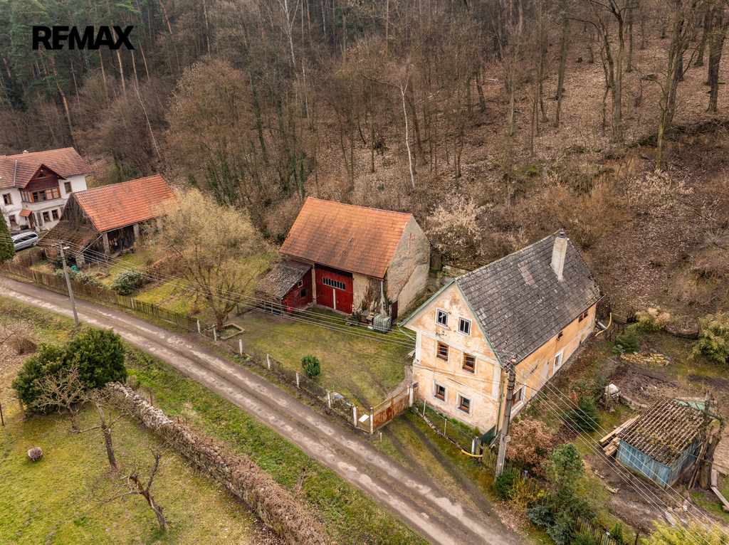 Prodej rodinného domu ke kompletní rekonstrukci, stodola, lesní pozemek, obec Želízy okr. Mělník