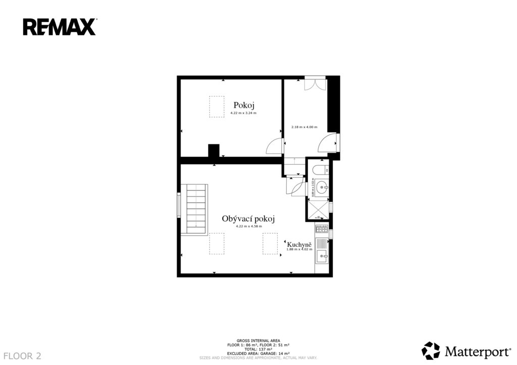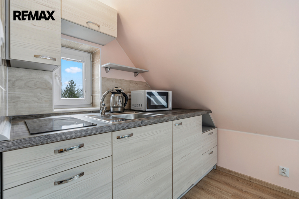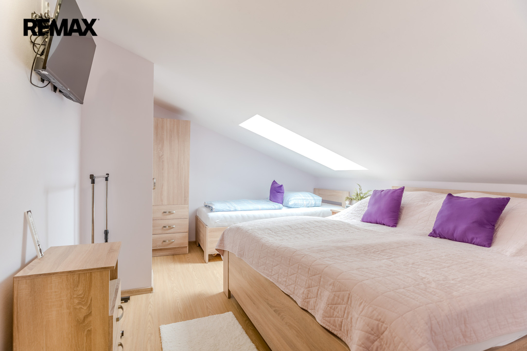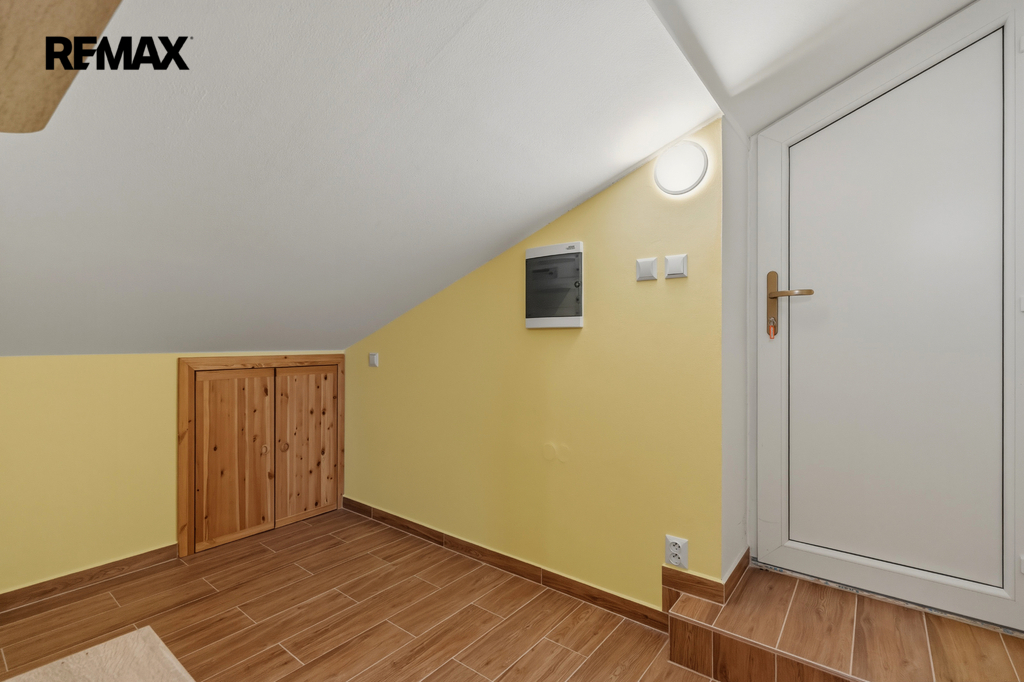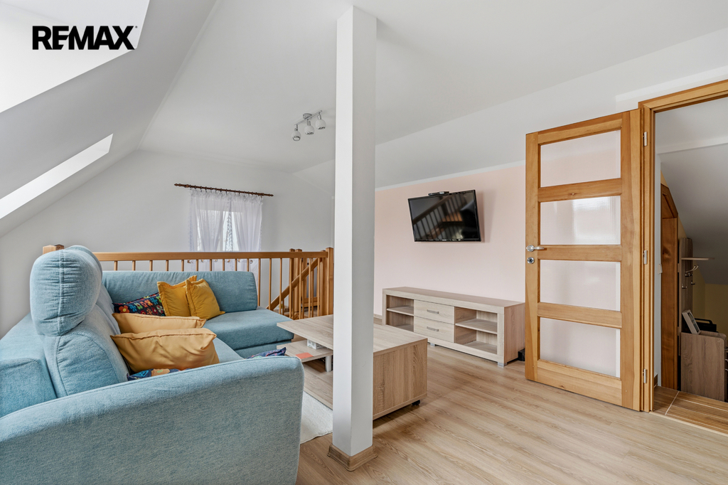 2. nadzemní podlaží: obývací část s menší kuchyňkou, ložnice, koupelna s toaletou, chodba