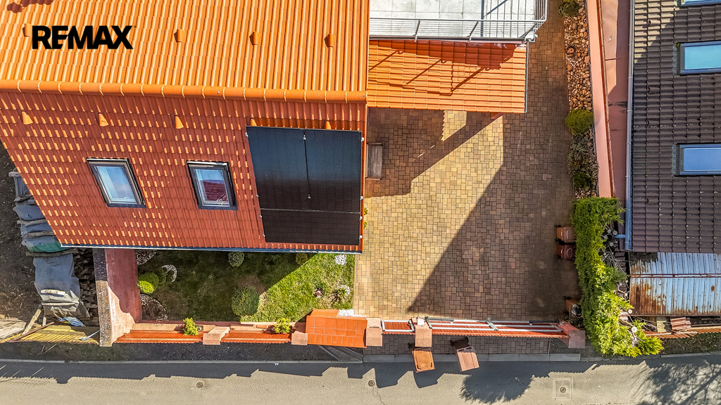 Každé podlaží má svůj vstup – do 1. NP hlavním vchodem, do 2. NP je přístup vnitřním schodištěm nebo samostatně po venkovních kovových schodech ze strany domu.
