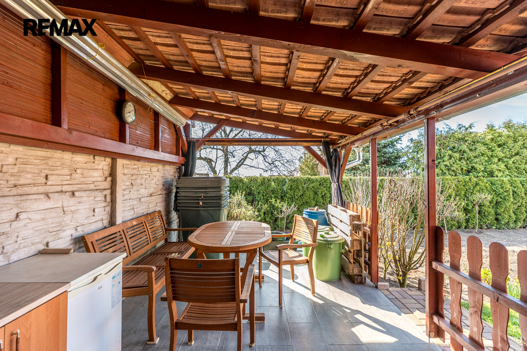 -francouzským oknem přímo z obývacího pokoje na terasu, která nabízí příjemné místo pro ranní kávu i klidné večerní posezení.