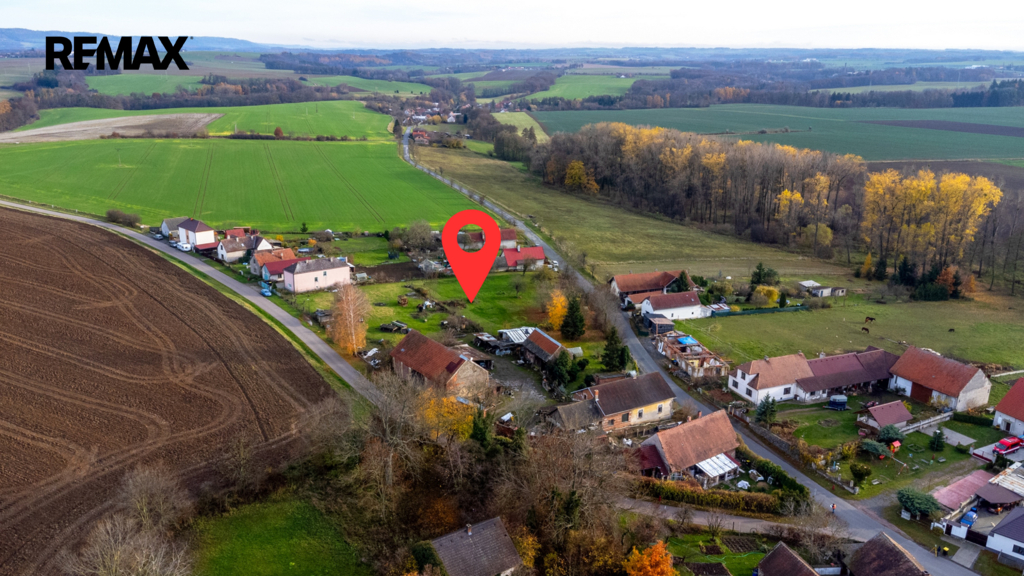 Na pozemku stojí podsklepený rodinný dům s číslem popisným o dispozici 4+1 určený k rekonstrukci a dále dvě stodoly. Dům je možné vytápět plynovým kotlem, krbovými kamny nebo kotlem na tuhá paliva. Je napojen na elektřinu a plyn. Na pozemku se též z každé strany nacházejí dvě vodovodní přípojky - jedna již osazena vodoměrem. Zdrojem vody pro dům je v současnosti jedna ze dvou studen - druhá studna se nachází na opačné straně pozemku a slouží zejména pro zalévání. V obci není zavedena kanalizace - odpad je řešen individuálně jímkou, případně se dá pomocí ČOV. Ohřev teplé vody zajišťuje elektrický bojler. Do hlavní stodoly je zavedena elektřina.