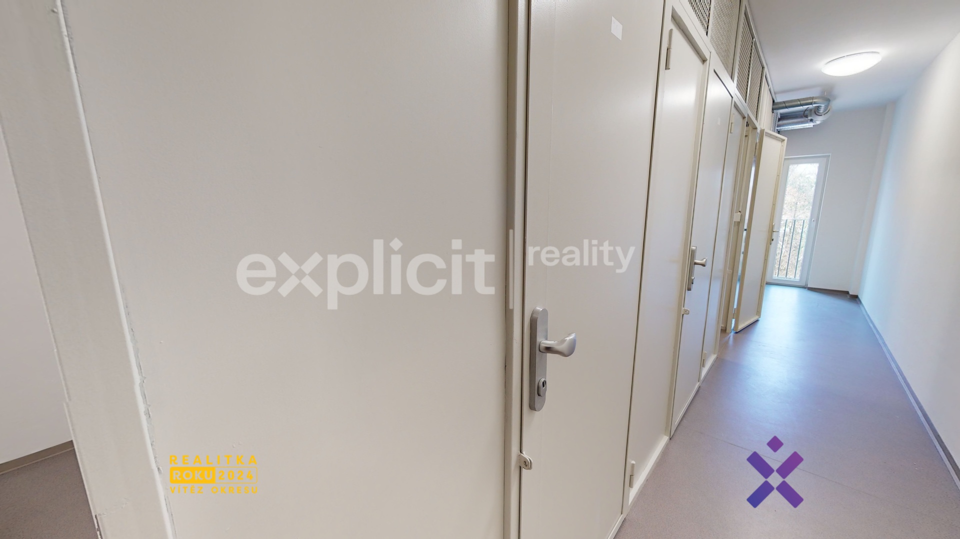 K bytu se přímo na chodbě nachází víceúčelová komora o velikosti 3,5 m² s elektrickou zásuvkou pro nabíjení elektrokola, elektrokoloběžky atp.