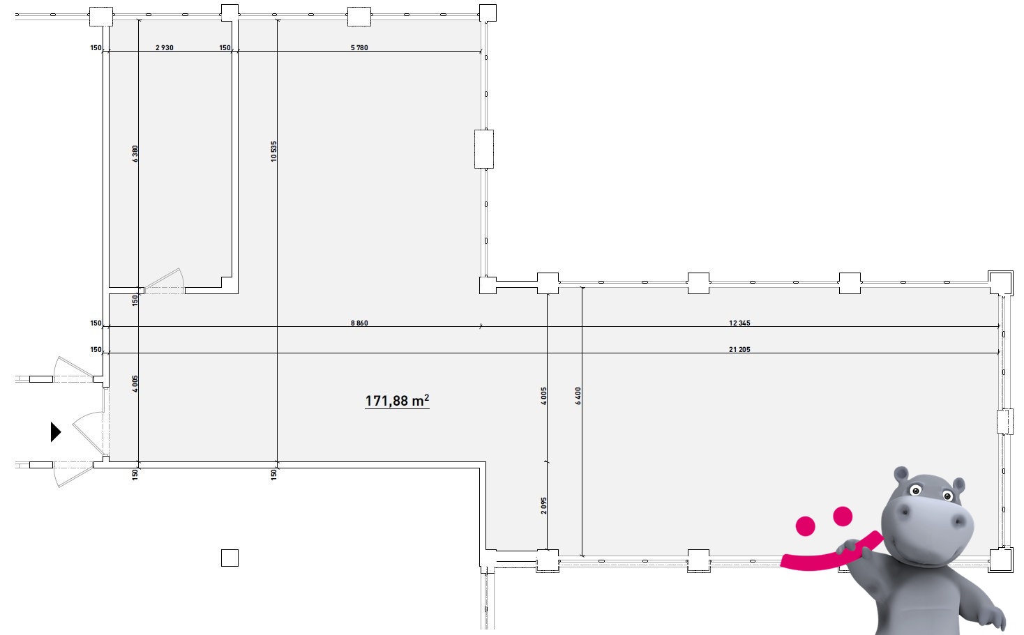 - Plocha kanceláří: 171 m²