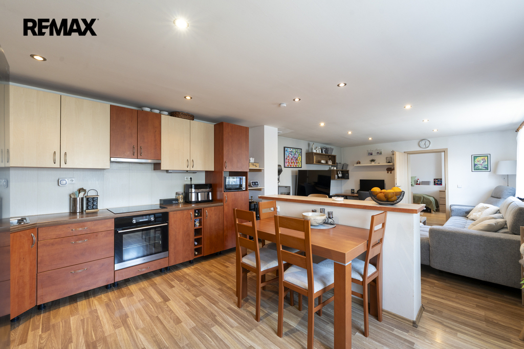 obývací pokoj propojený s kuchyní (plně vybavená spotřebiči)