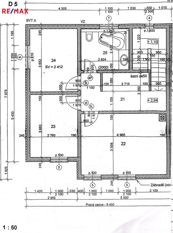 V patře se nachází tři samostatné pokoje a koupelna s vanou. Součástí horního podlaží je i vestavěná skříň s dostatkem úložného prostoru.