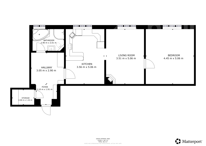- Celková podlahová plocha: 86 m²