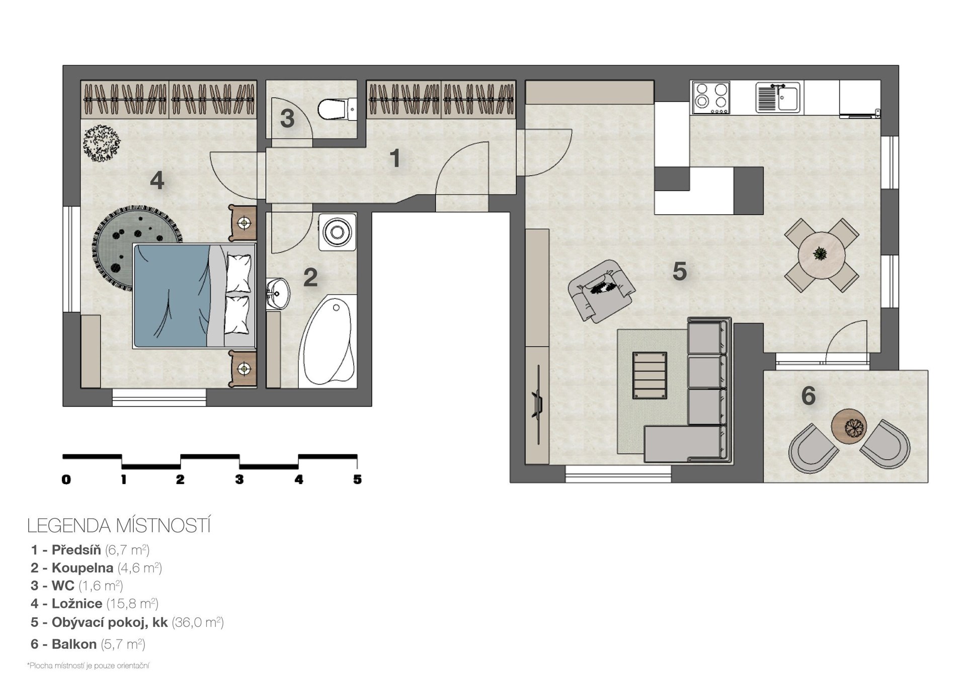 - Dispozice bytu: 2+kk