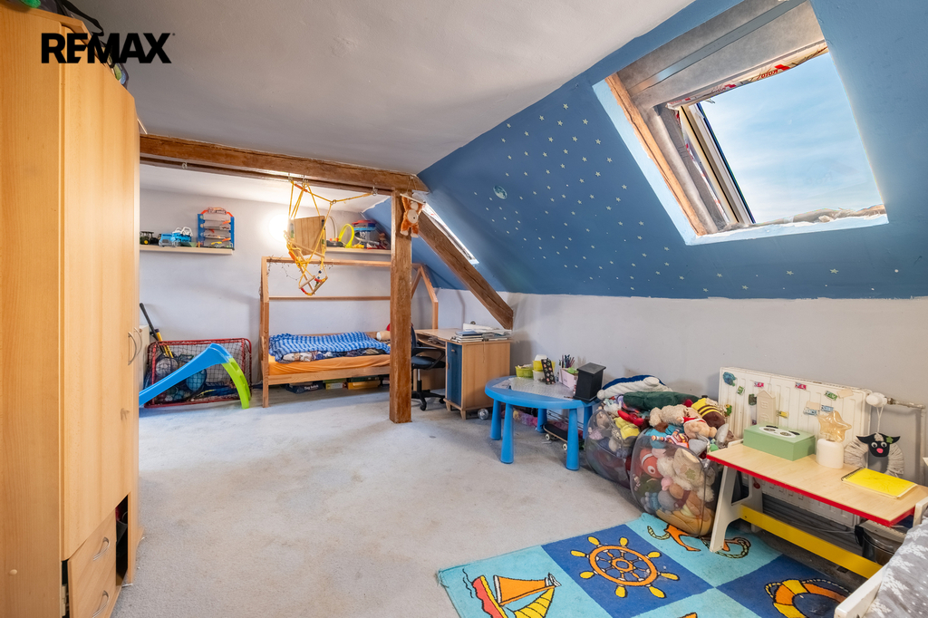 Dominantou interiéru jsou přiznané masivní dřevěné trámy, které vytvářejí hřejivou a romantickou atmosféru. Podkrovní prostor je díky novým kvalitním střešním oknům krásně prosvětlený po celý den a nabízí příjemné výhledy do okolí. Tento byt je ideální pro ty, kteří chtějí bydlet jinak než „v běžné krabici“ – nabízí osobitý styl, vzdušnost i útulnost zároveň.