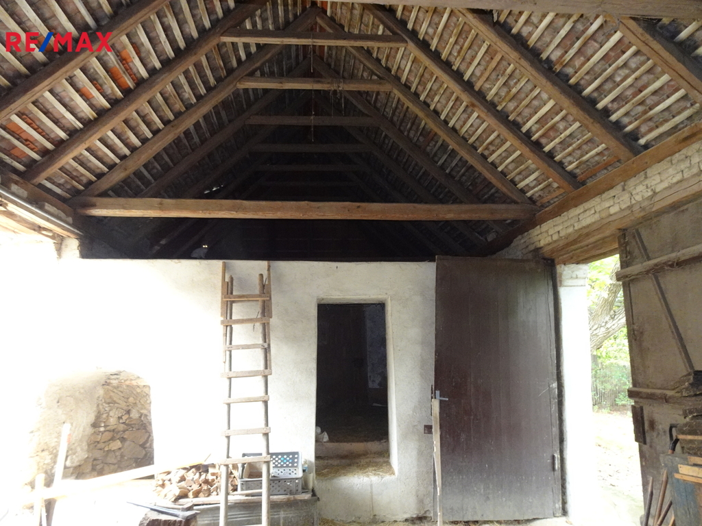Za stodolou je prostorná zahrada s vlastním příjezdem a se vzrostlými stromy, směřující na východ.