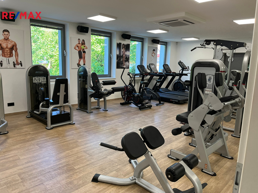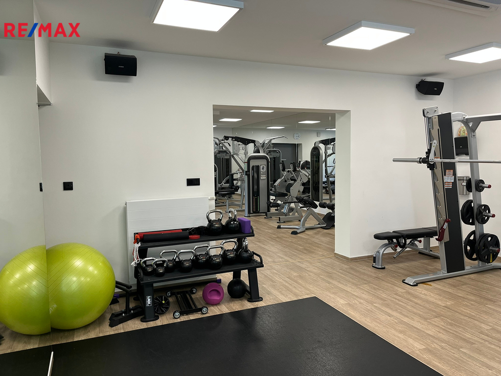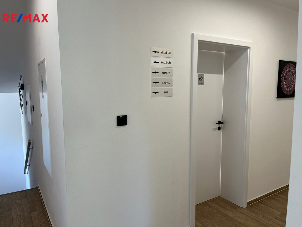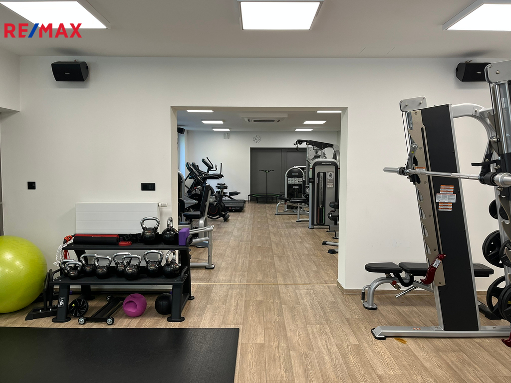Prostor A – 206 m² (přízemí): recepce, 2 kanceláře, šatny pro muže a ženy se sprchou a WC, fitness sál, sklad, bezbariérový vstup, WC pro invalidy.