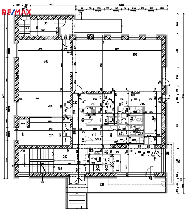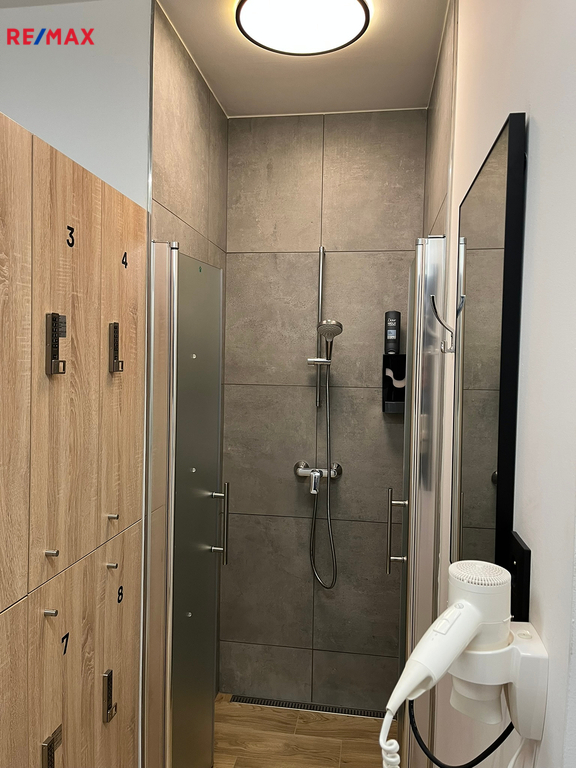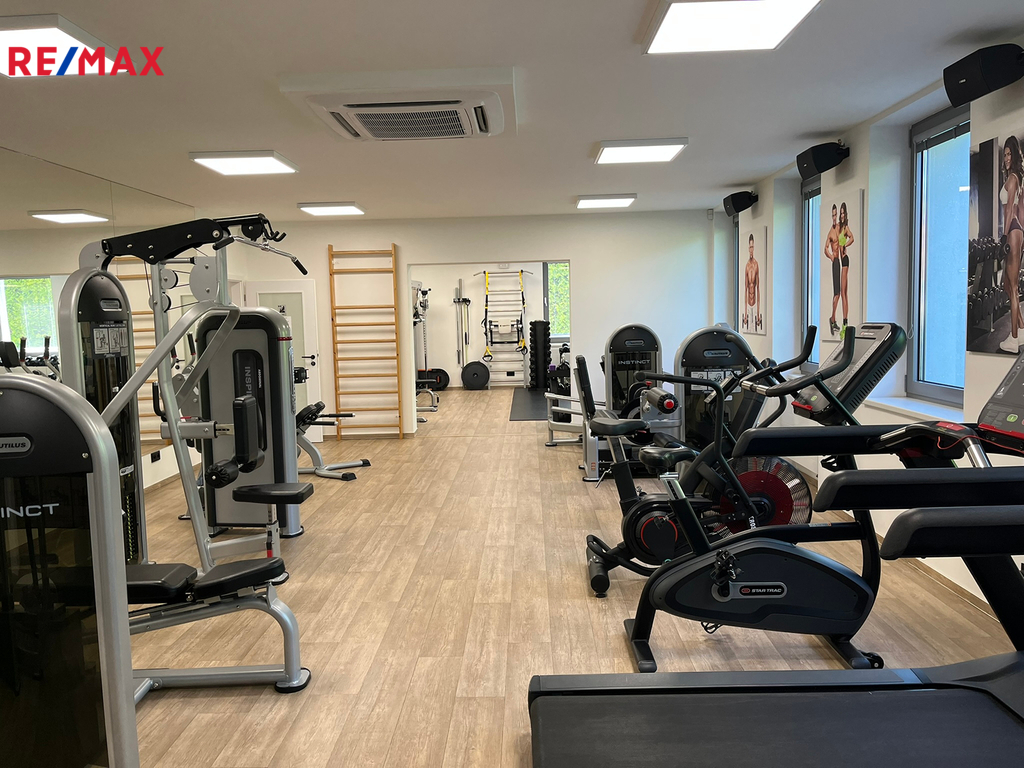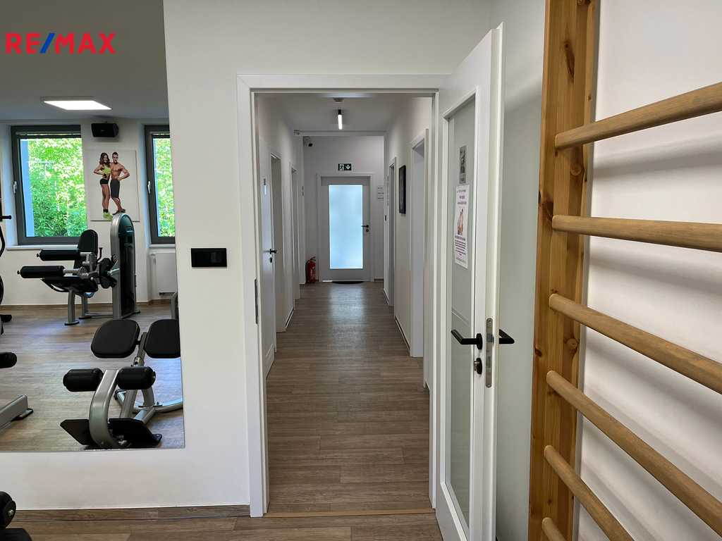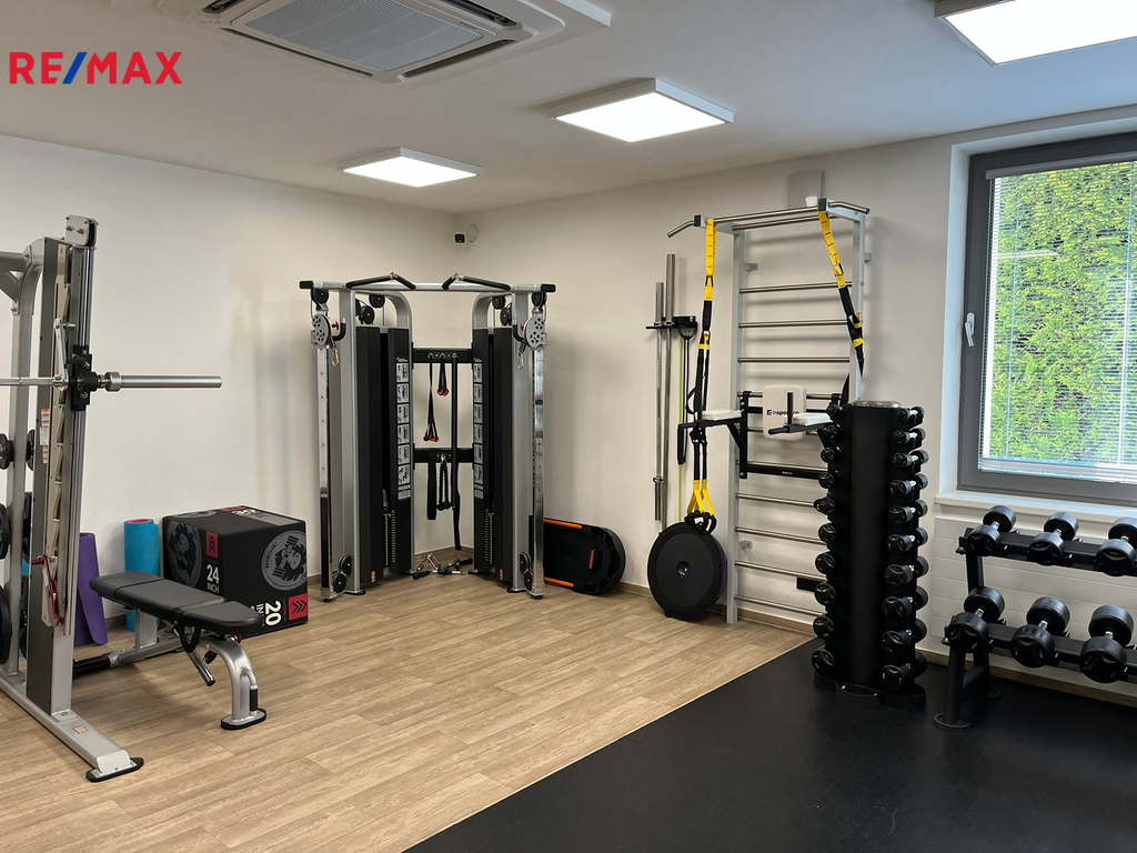Prostor A – 206 m² (přízemí): recepce, 2 kanceláře, šatny pro muže a ženy se sprchou a WC, fitness sál, sklad, bezbariérový vstup, WC pro invalidy.