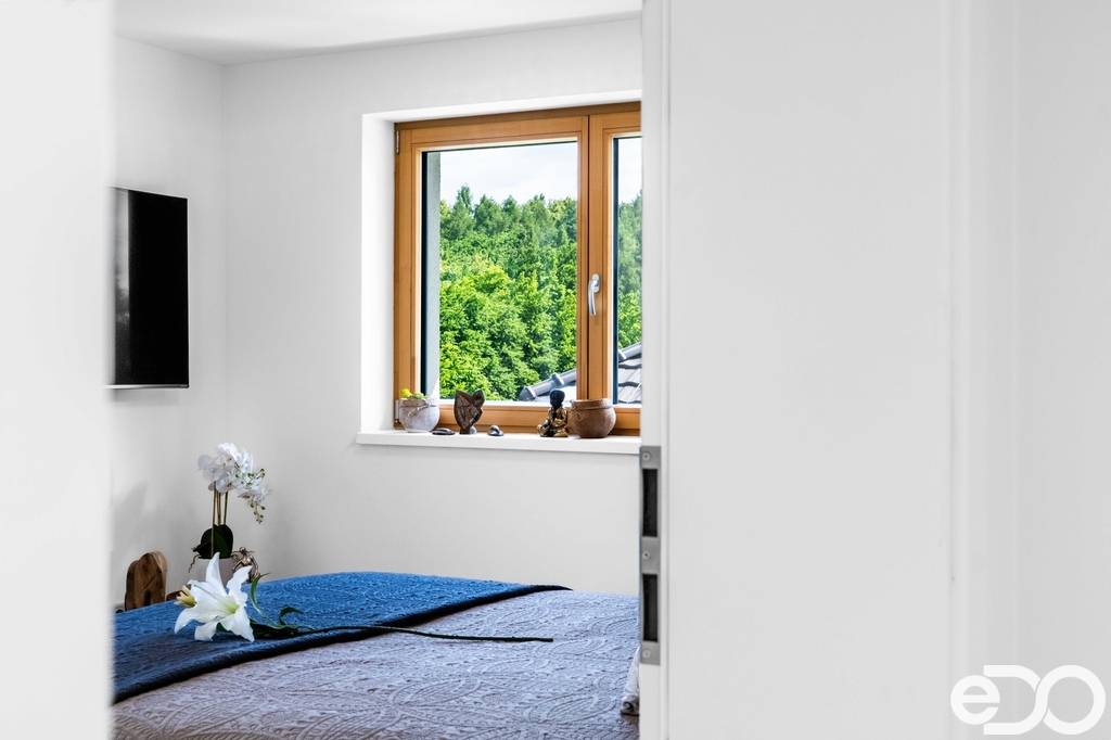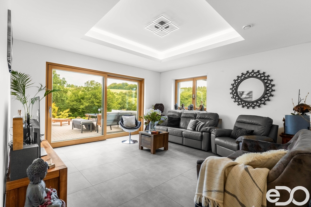 Dům je nízkoenergetický, vytápěný tepelným čerpadlem, s podlahovým topením, rekuperací a elektrickými roletami. Dispozice nabídne prostorný obývací pokoj s výstupem na terasu s krásným výhledem, kuchyňský kout, ložnici, tři další pokoje, koupelnu i technické zázemí. Ať už hledáte další pokoj, klidnou pracovnu nebo vlastní domácí fitness, tady si prostor přizpůsobíte podle sebe. 945 m² zahrady znamená prostor pro děti, bazén, grilování i klidné zahradničení. Mírný svah nabízí možnost vytvořit terasy nebo zajímavé zahradní prvky. Oplocení zatím není realizováno, což dává příležitost zvolit si styl i míru soukromí podle sebe. K domu máme připravenou i virtuální prohlídku, díky které si nemovitost projdete z pohodlí domova – rád Vám ji zašlu.