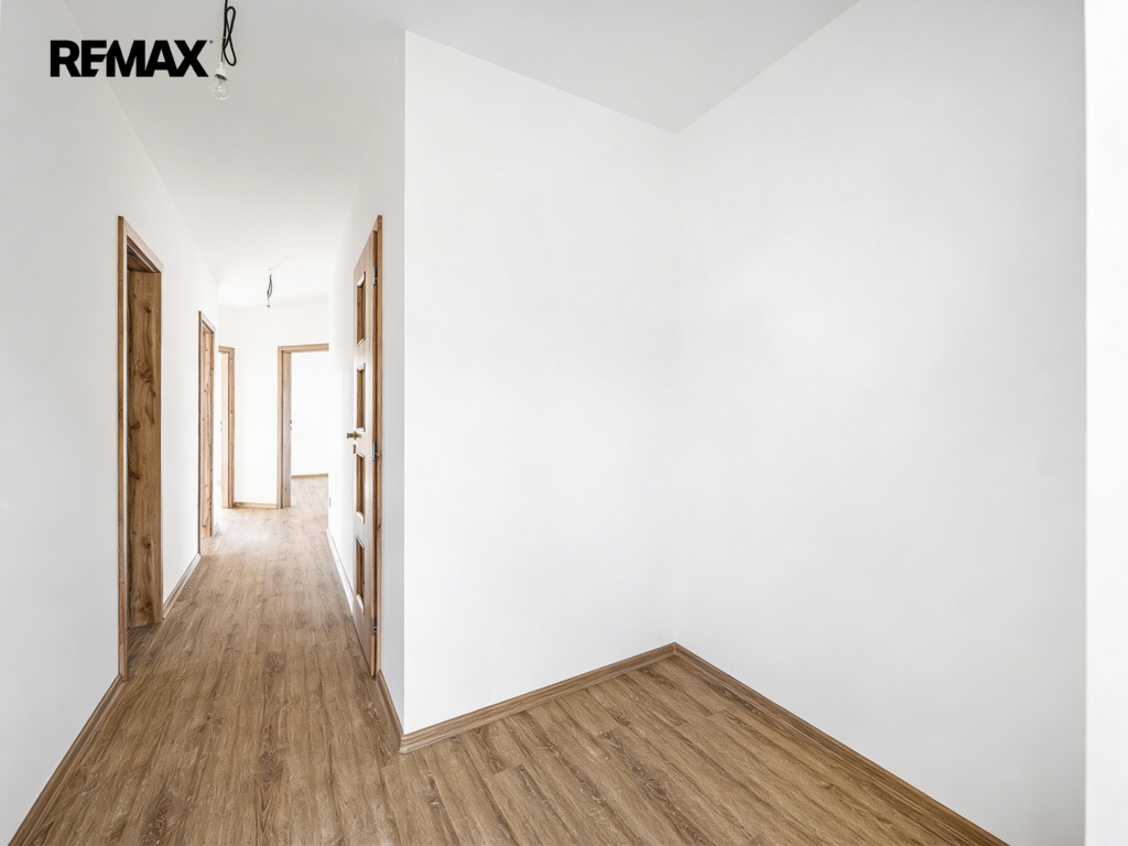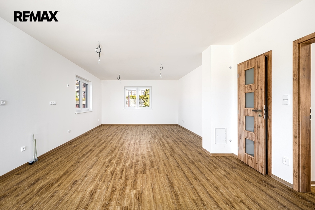 Prodává se vč. podlahových krytin (lepený vinyl), obložkových dveří a jedné koupelny s WC a sprchovým koutem. Druhá koupelna je připravena na dokončení dle představ nových majitelů. Dále bude potřeba dodělat fasádní nátěr a podlahu venkovní terasy.