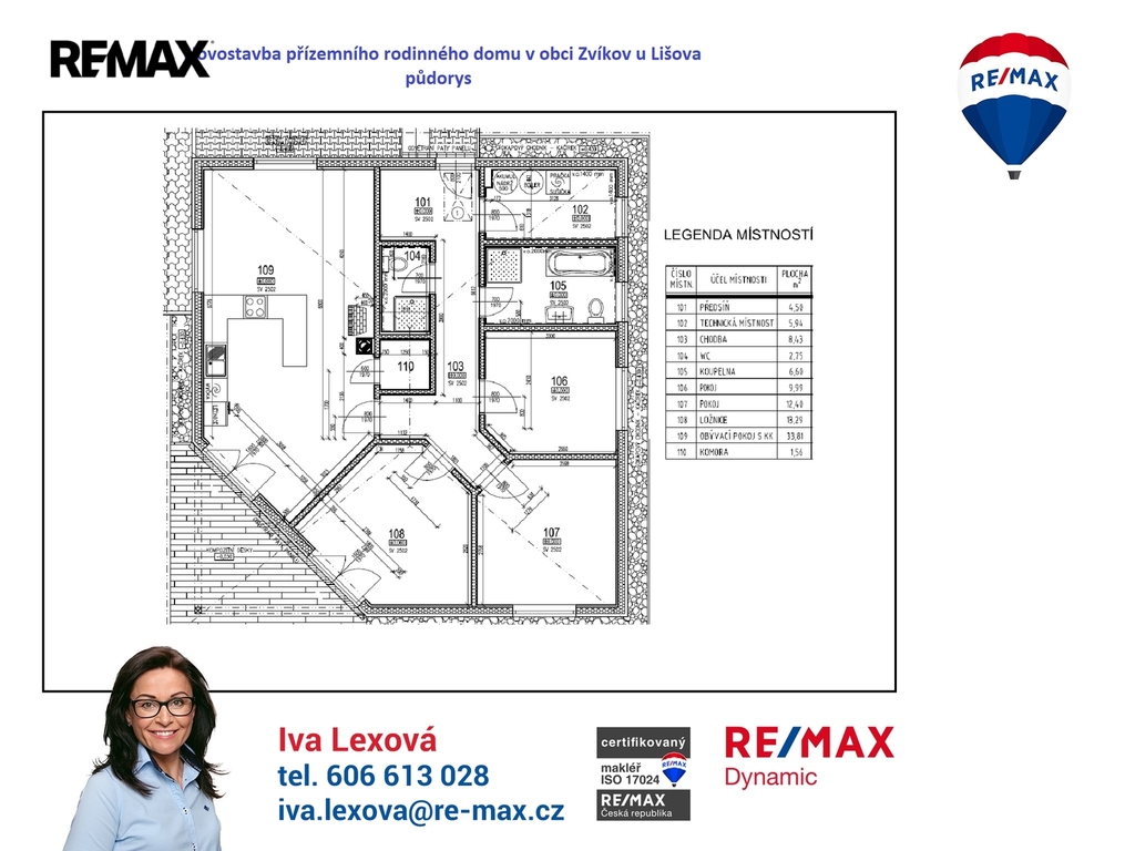 Zvíkov u Lišova - prodej novostavby přízemního rodinného domu